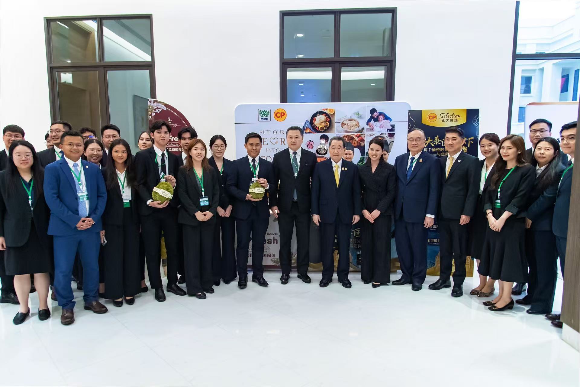 ▲正大集團資深董事長謝國民、董事長謝吉人與CPFresh正大泰國水果中泰團隊合影。