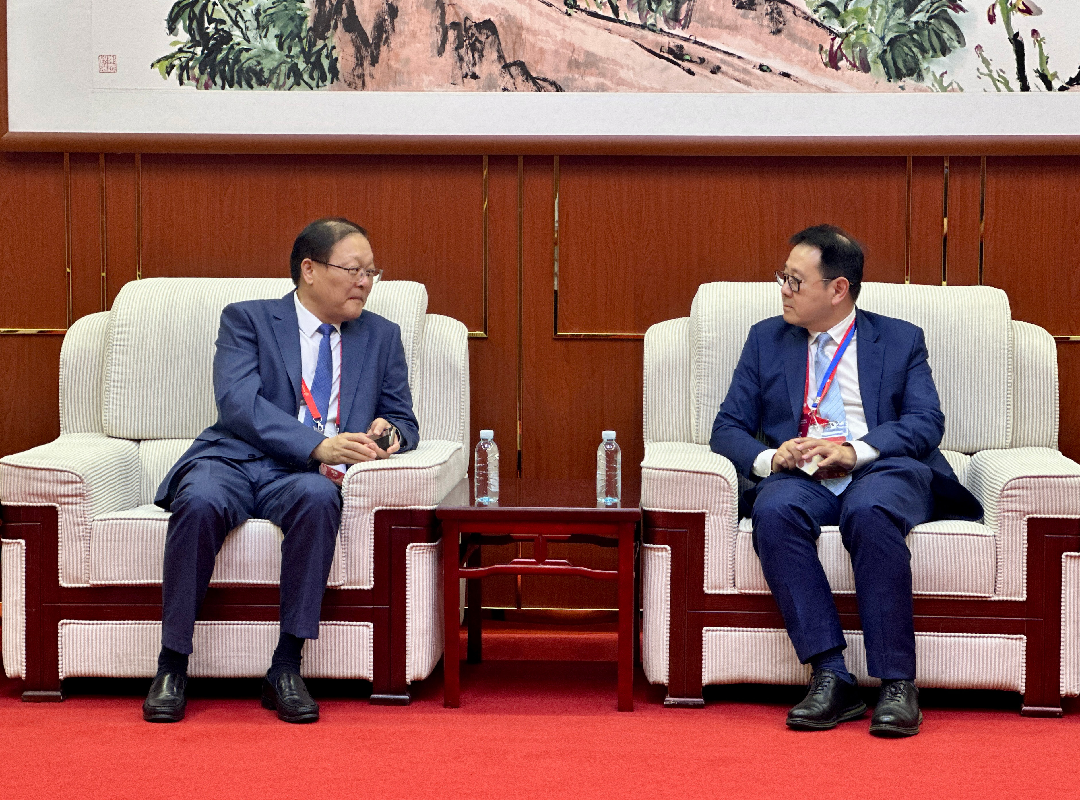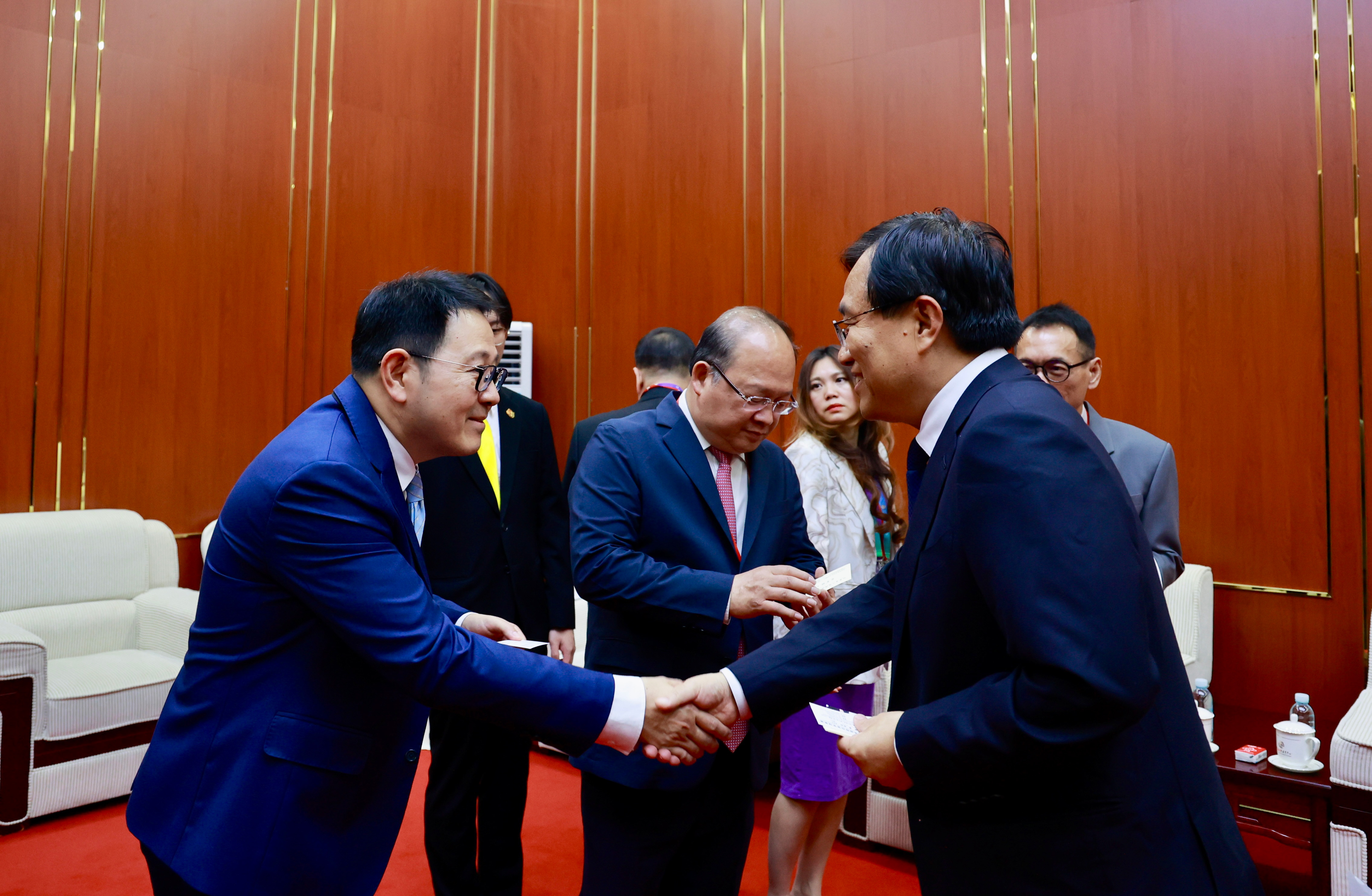 晚宴結束后,中國貿促會會長任鴻斌親切會見了本屆鏈博會主賓國——泰國代表團,正大集團資深副董事長謝明欣參加了此次會見。