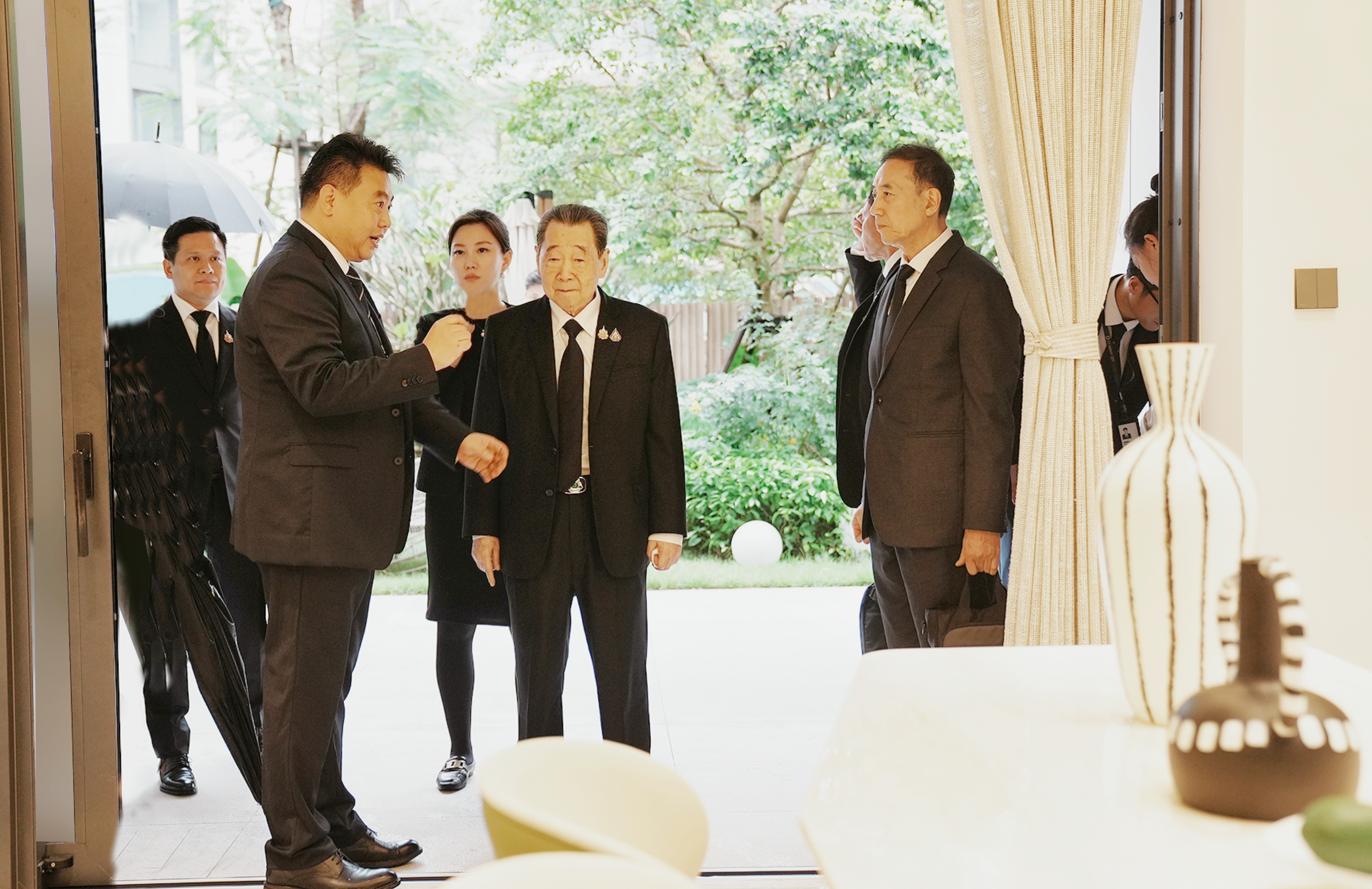 ▲謝國民集團資深董事長參觀正大·太陽河咖啡小鎮樣板間。