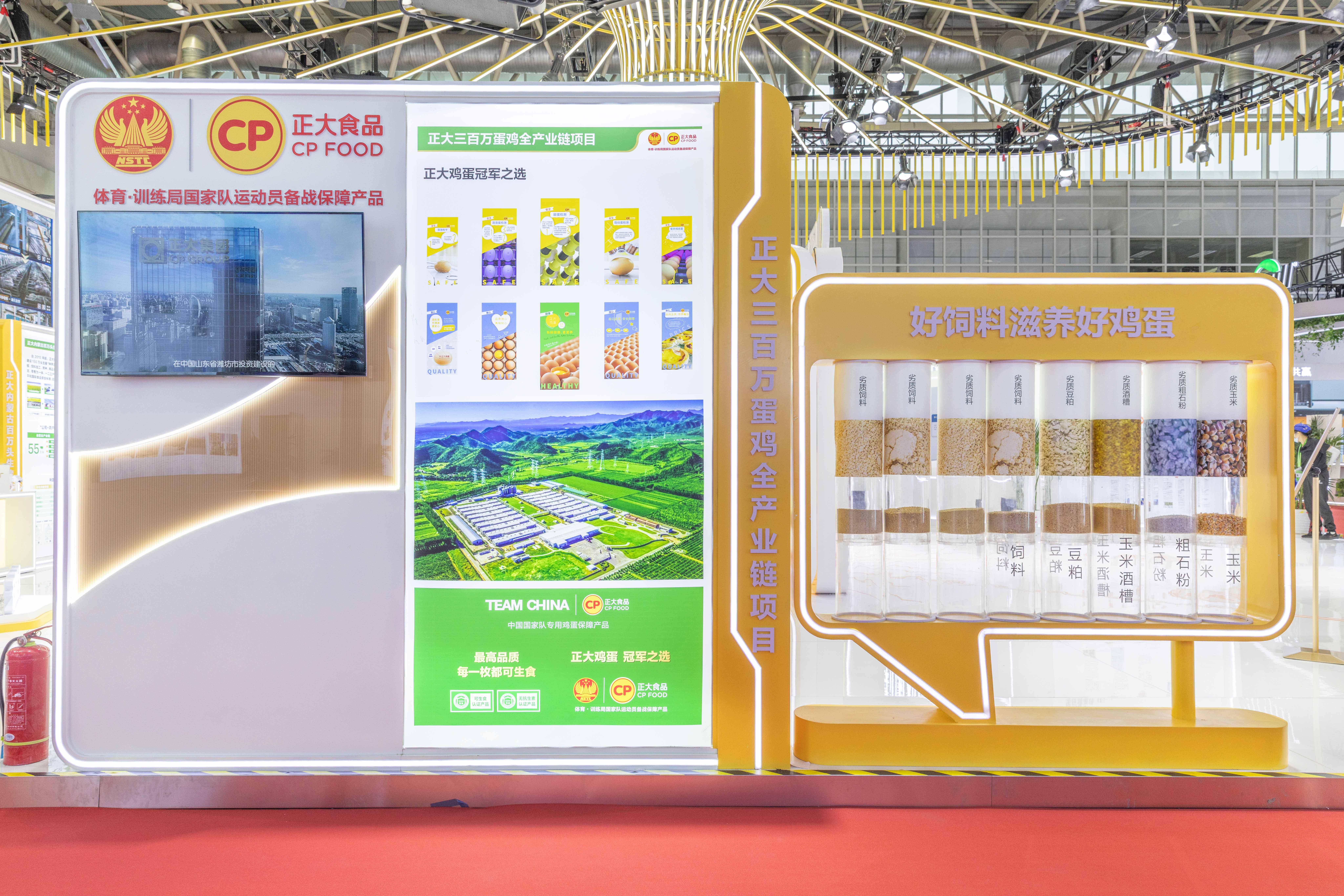正大300萬蛋雞全產業鏈項目是集團“四位一體”模式的典范。政府整合資源、銀行提供資金支持、農民以土地入股獲得租金分紅與就業崗位、企業負責現代化運營管理,該模式成功重塑農業生產關系,實現“小農變大農”的共同富裕目標?,F場還陳列了通過喂養OMEGA-3、葉黃素、富硒等功能性飼料生產的特色營養雞蛋,并利用VR技術播放雞蛋科普視頻,讓來訪嘉賓沉浸式學習雞蛋知識。
